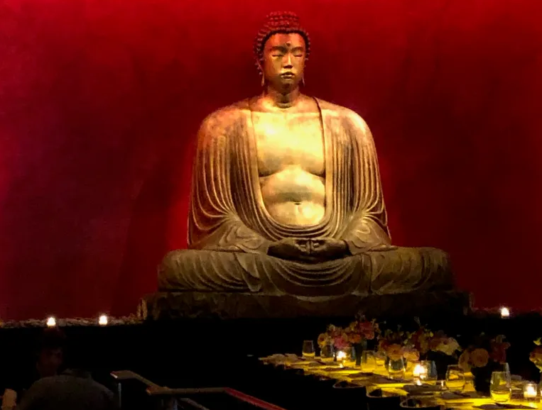 We met Ryan and Alice a couple blocks away from Morimoto’s at Buddakan, also owned by Stephen Starr who funded Morimoto’s. Buddakan was a good intro: 45-foot-high ceilings, high-tech zen (silver painted columns, woven aluminum and mahogany seats) and the eponymous 20-foot tall golden Buddha presiding over the whole scene.